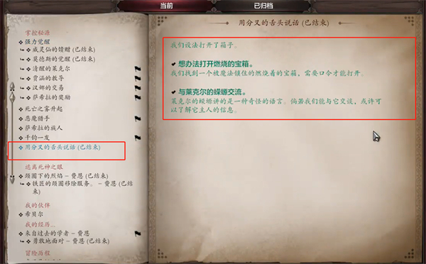 2、尽管我们无法理解它在说什么,但只有原生蜥蜴人带着学者标签的才能听懂。不过,这并不影响任务的进行,因为与蜥蜴人对话本身就是任务的一部分。