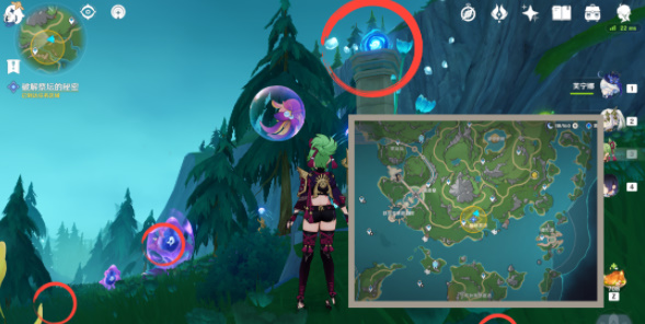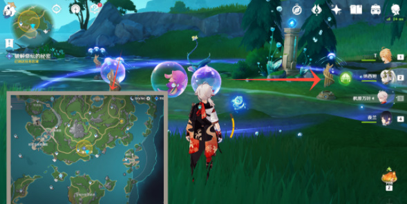 4、然后我们通过战技来改变泡泡位置,使得泡泡边缘可以覆盖3处装置,最后一起击破泡泡。