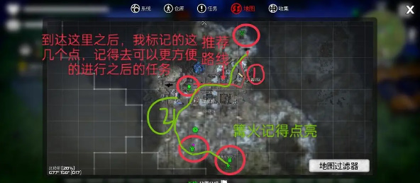 2、然后从这然后从这里出发。需要到达这个感叹号!领取任务后会有标记点。