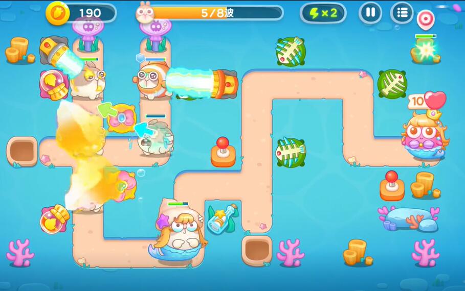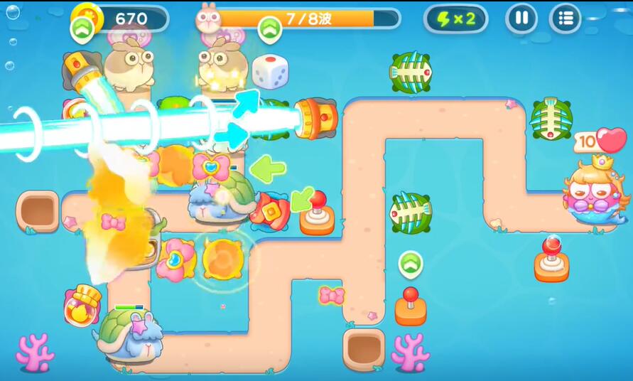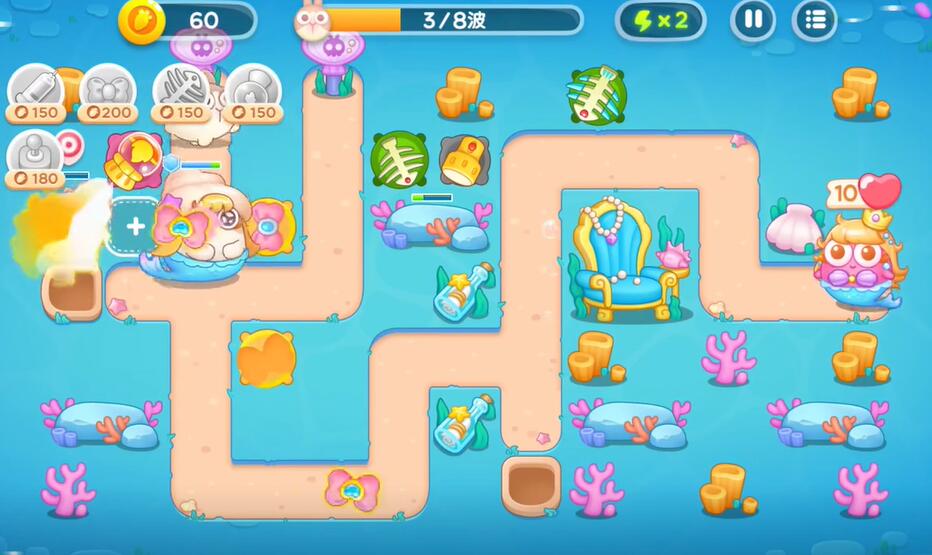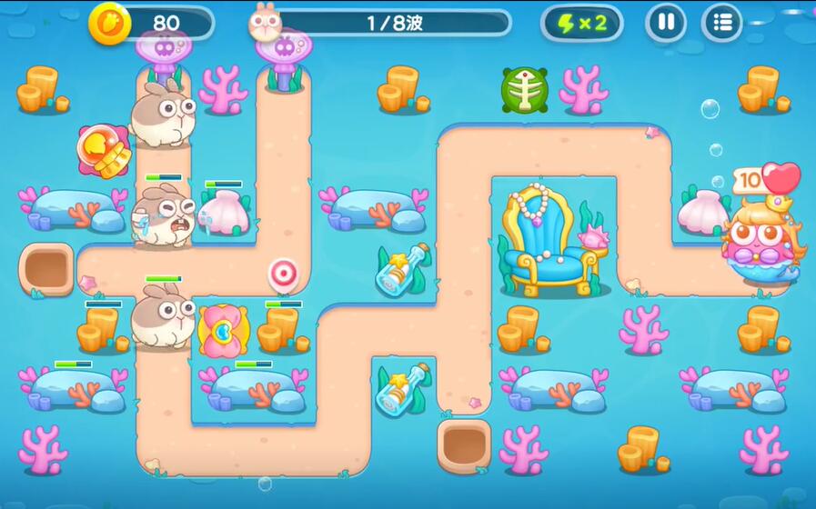7、根据自己场面的情况建造自己的防御塔,对所有的兔子进行攻击,消灭所有的兔子即可完成这个关卡。