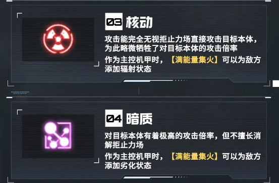 4、艾塔具有五种不同的驱动类型,这将决定艾塔的攻击属性以及[满能量集火]。