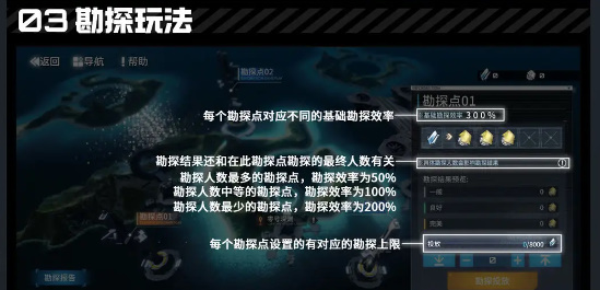 3、勘探奖励为信息聚合物,最终的数量为:(信息碎片投放数量X基础勘探效率X最终转化效率)最终勘探奖励通过邮件发放给执行官每周只能进行一次投放哦!选择哪个勘探点,投放多少材料,执行官可要仔细期酌。