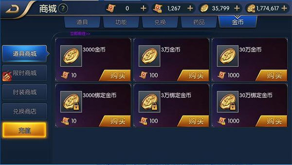1、商城:点券商城、限时抢购、时装商城、绑点商城、神秘商店、深渊商店